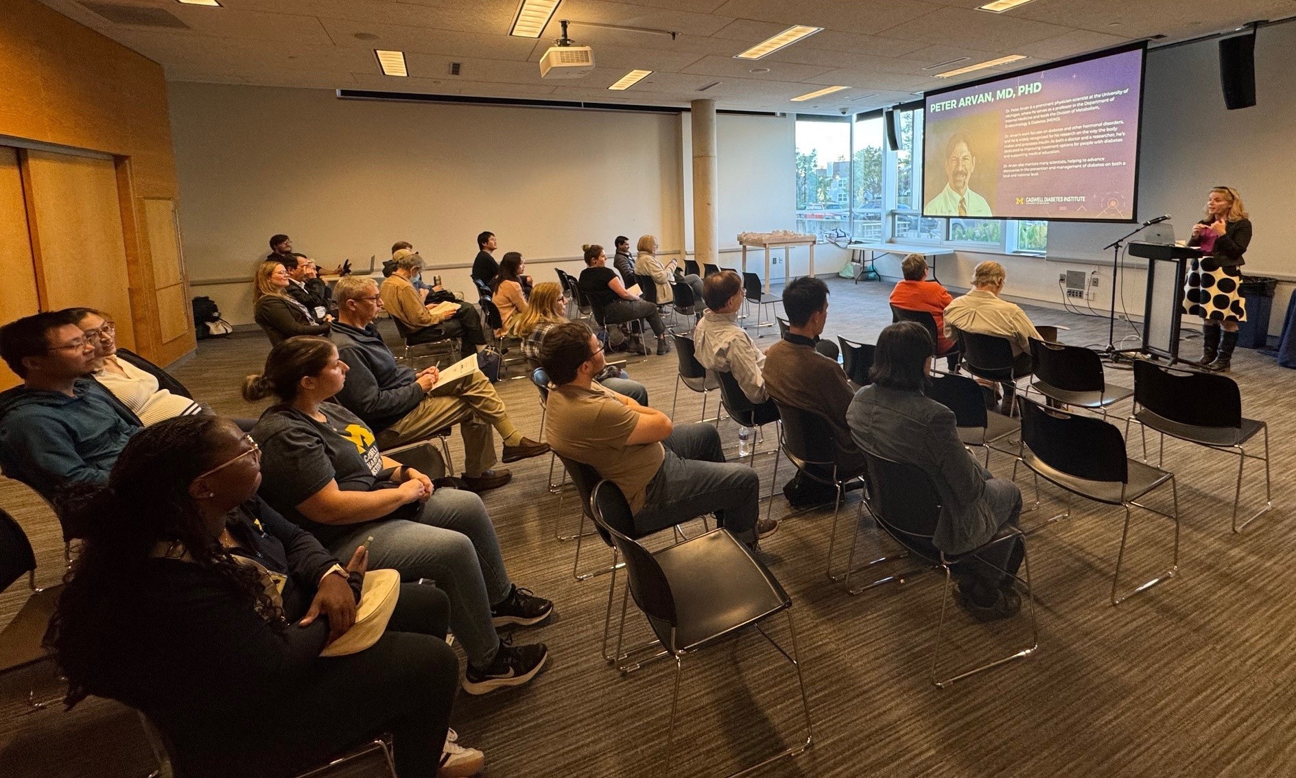 Led by Peter Arvan, MD, PhD, a prominent physician-scientist at the University of Michigan, the informative, yet relatable session walked attendees through what diabetes is, why it happens, and how it affects daily life. Dr. Arvan also shared information on the differences between type 1 and type 2 diabetes, common risk factors, and innovative research advances happening right here at the U that focus on prevention, treatment, and the search for a cure.